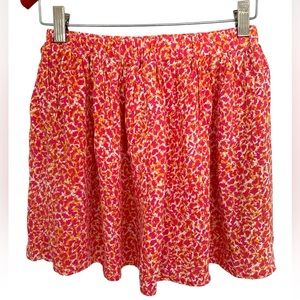 Adorable fully lined mini skirt with an elastic waist in a gorgeous pink and orange pattern