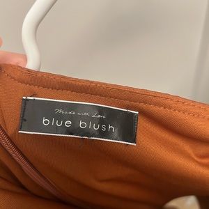 Brown lined satin mini dress. Princess sleeves with a tie front detail. No size marked but fits me snug and I’m a size 8 in pants and size small in tops (when I purchased it it was marked size M). Skirt portion of dress is 17 in length and 17.5 in at the hips. Fabric is extremely soft satin with soft stretchy lining, not thin. Fully functioning posterior zipper closure.