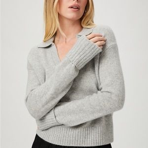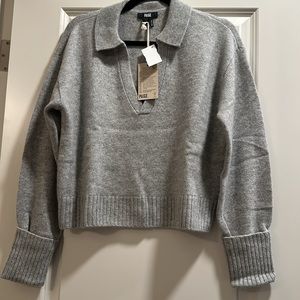 Crafted in 100% Eco Cashmere, this collared polo sweater comes in heather grey and features cuffed ribbed sleeves and a classic v-neckline. We'll be wearing this beauty with every shade of denim all season.