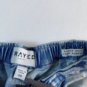 Frayed, acid wash Super High Crop Barrel jeans, size 2/26