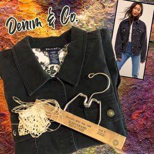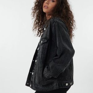 90s Vintage Black Denim Oversized Boyfriend Jacket Shacket