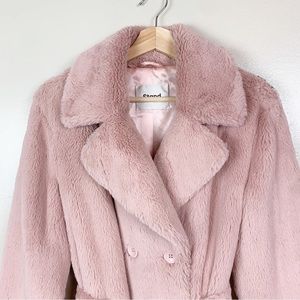STAND STUDIO Fausta Jacket Faux Fur Colorblock Double Breasted Waist Tie M
