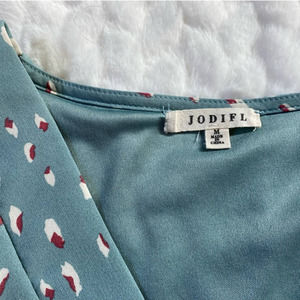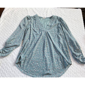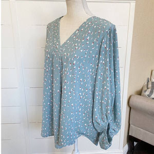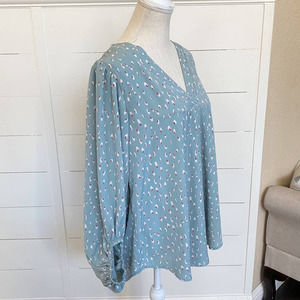 Mint Green Printed V-Neck Bubble long sleeve blouse