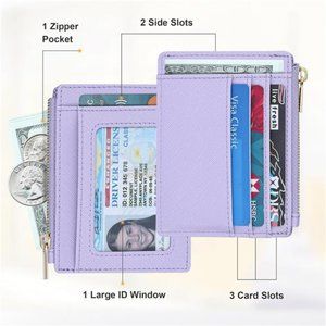 About this item Slim & Compact: Made of high-quality synthetic leather which is durable, stylish, and lightweight with 1.20oz only. Functional & Practical: 6 card slots, 1 outside id window, 1 zipper pocket for cash and 1 keychain ring f you need to attach keys together. Perfect Size: 4.4"*3.38". It's compact, super thin, ultra slim and perfect fit in front pocket. Features: Minimalist, Super thin, Lightweight, Slim design, Stylish.