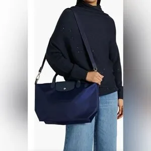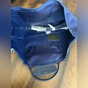 LONGCHAMP Le Pliage leather-trimmed shell tote brand new whitout tag NO signs of wear!! It came whit brand name card and strap; Color navy; Size: travel size XL ;