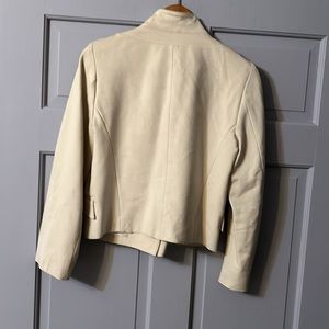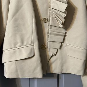 Piazza Sempione Cream Long Sleeve Jacket. It has a ruffled front with pockets. NWOT excellent condition, size small.