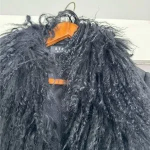 Woman’s wool coat with fur around collar & sleeves . Belt & 3/4 long size large