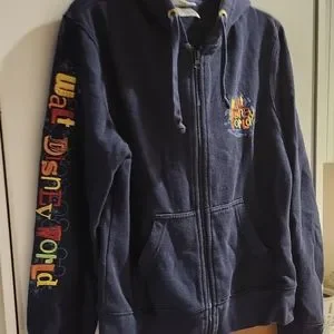 Disney Parks Walt Disney World Embroidered Full Zip up Hoodie Jacket. Adult Size Small. Dark Blue. Zips up smoothly. Gently used.