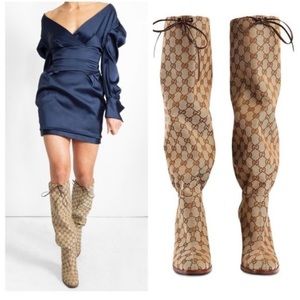 GUCCI Lisa GG Canvas Mid-Heel Boots
