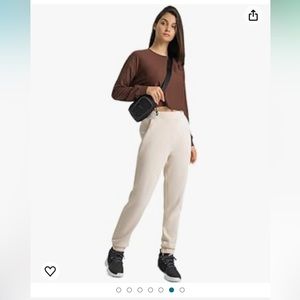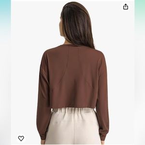 Crop Top Long Sleeved Womens XL Brown Built in Bra Gym Workout Top Shirt D1