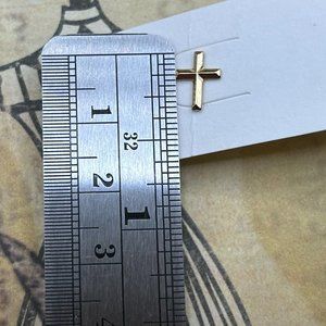 A pair of petite vintage 14K yellow gold cross shaped stud pierced post earrings, marked 14K on original ear backs and posts. These are preowned and have some evidence of age. Beautiful vintage fine gold jewelry. See pics with ruler to confirm size. Marked on posts and backs. Smoke free. Will come to you carefully packed with fast shipping and tracking. Earrings were never worn. Religious, Christian, theme, jewelry, fine.