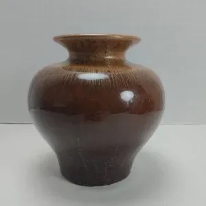 Brown Drip Glazed Pottery Art Vase 6.5" Home Decor