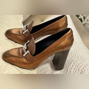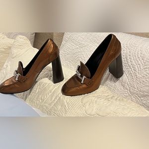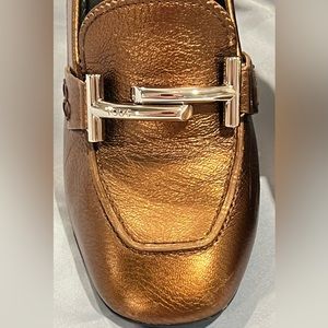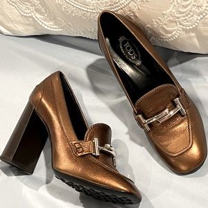 Tod's👠🔥 Tod's Metallic Bronze Leather Gomma Maxi Double T Court Loafer Pumps