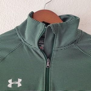 Under Armour Women's Heatgear 1/4 Zip Green Striped Pullover Size S Loose Fit