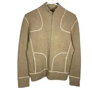 Neiman Marcus Cashmere Zip Up Knit Cardigan Sweater w Pockets Light Brown Large