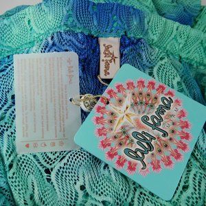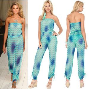 LULI FAMA SIETE MARES Crochet Strapless Jumpsuit Cover Up Size L Blue Multi NEW