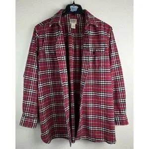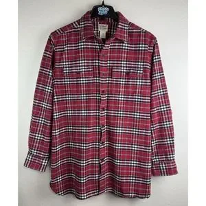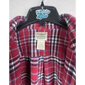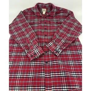 L.L. Bean Mens L-Tall Red Traditional Fit Plaid Long Sleeve Flannel Button Shirt