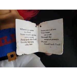 Large NFL Buffalo Bills Russ 1991 Good Luck Troll doll. Vintage used condition. Some staining. Tag in poor condition.