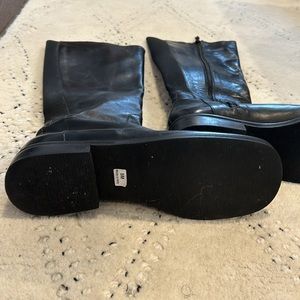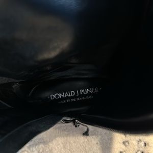 Donald Pliner black leather boots with elastic calf extension. Full zip, rubber soles and squared toe. Size 8. Made in Italy.