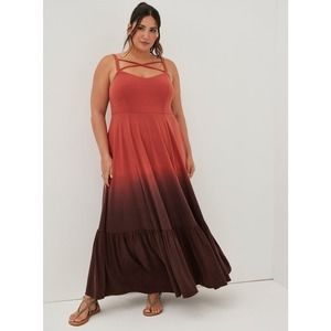 NWT Torrid Super Soft Maxi Jersey Tiered Strappy Red Dip Dye Dress Size 00X (10)