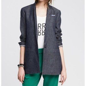 BANANA REPUBLIC Womens Chambray 100% Linen Boyfriend Blazer Sz 6 Blue NWT