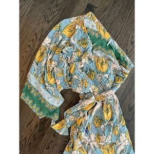 Free People Pardon My French Maxi Wrap Green Patterned Dress XS