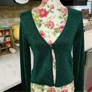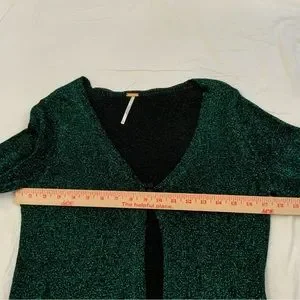 Free People Emerald Green Emmaline Metallic Cardigan Sweater Size Medium New