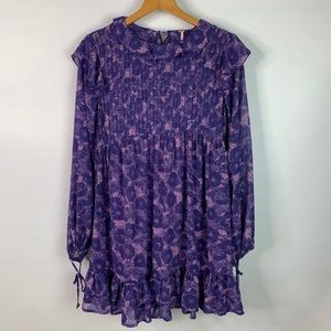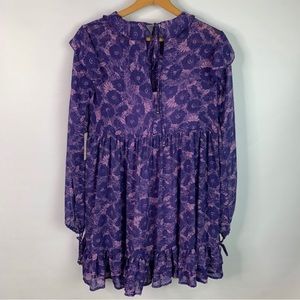 Sweet and fluttery babydoll-inspired mini dress featuring ruffle and pleat detail throughout with V-neckline with tie string feature.