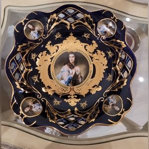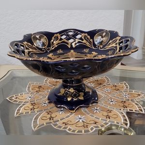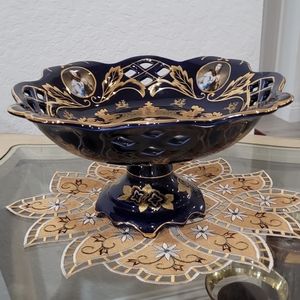 Vintage Alpine Cuisine Navy Pedestal Plate Royal Regency Design