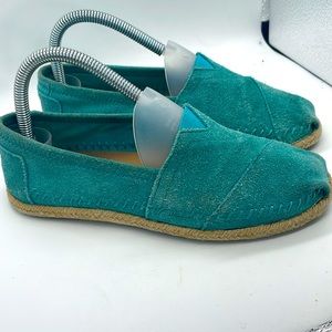 TOMS Suede Leather Turquoise Espadrilles Flats Sz 6.5