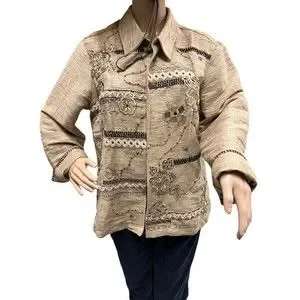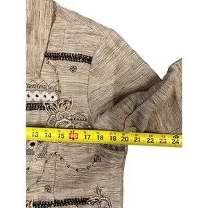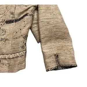 Coldwater Creek Tan Embroidered Floral Western Boho Linen Blazer Jacket Size 10