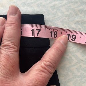 Women’s Calvin Klein poly/rayon black skirt size 12. Measures 17 1/2 inches (34-35 inch waist), 24” in length. Has two slash pockets, unopened stitching, kick pleat in back and back zipper.