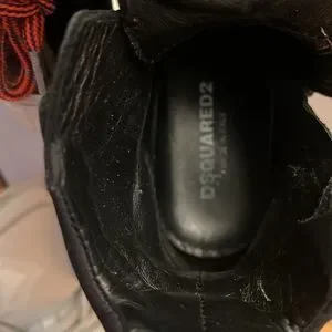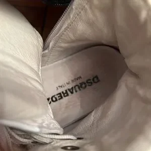Dsquared2 , Made in Italy Size: 31 kids .Two pairs lot sneakers- shoes. One white color the other black. Only one original box . Each pair original price was $180 . All questions welcome.