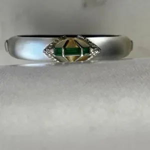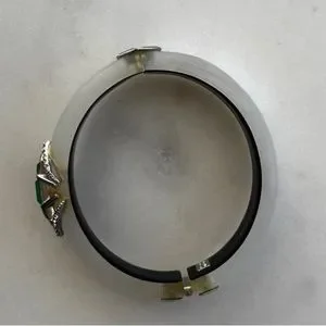 Alexis Bittar Bracelet white silverish color hinged bracelet with crystals and green stone crystals. Great condition.