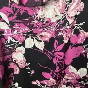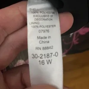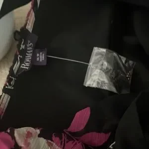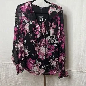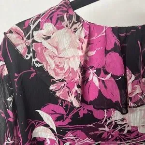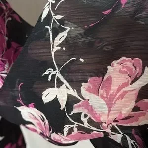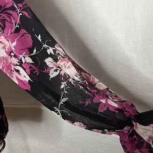 Roaman’s chiffon sheer arm sleeveless black underlies bodice pink black cream elastic around wrists ruffled at wrist and around neck polyester. New with partial tags .