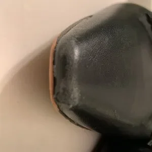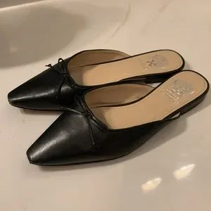 Chic black slide-in/mules, pointed toe, scuff marks on both toes and side (see pictures).
