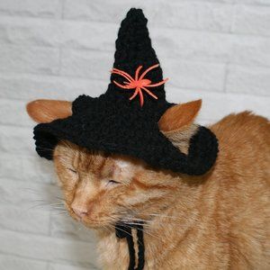 HAND CRAFTED Crochet Halloween Witch Hat Spider Cat Costume Photo Prop