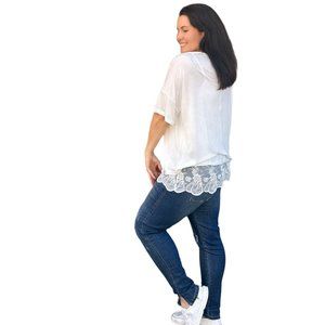Culture Code White Crew Neck Exposed Yoke Seam Short Sleeve Boxy Top CAY1646