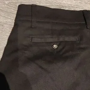 these shorts are in excellent condition, possibly never worn. exterior 97% cotton 3% elastane lining 65% polyester 35% cotton.
