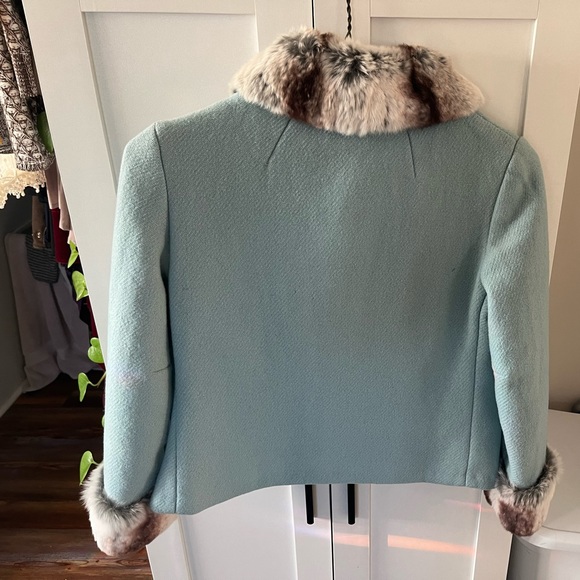 Vintage 60s blue wool and rabbit for jacket petite zero. Very small in size.