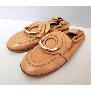 Hana loafers in goatskin with a flat sole and easy slip-on structure. This reinterpreted style is finished with an updated version of the line's iconic gold metal ring.
