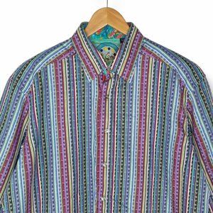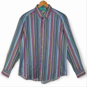 Robert Graham Flip Cuff Button Down Shirt Size XL Long Sleeve Colorful Stripes