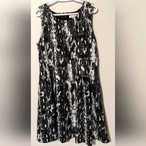 Calvin Klein, Black & White, Snakeskin Print, Scuba Dress, Size 16.