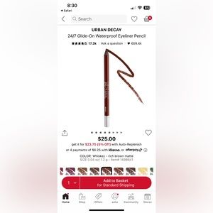 URBAN DECAY 24/7 glide on eye pencil- shade whiskey