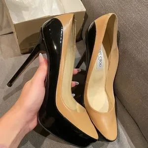 💅🏻💖Jimmy Choo Sepia Two Tone Nude & Black Patent Heels