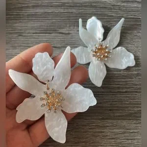 White flower earrings in gold hardware. Perfect for summer outfits. Super cute on