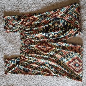 Great condition Fine turquoise blue, orange, yellow, and black boho patterened fashion legging pants, women's one size fits all but fits closest to a medium. Practically brand new, only worn once or twice. Bought from Compass, a local boutique