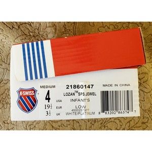 NIB K-Swiss Infant Baby Lozan SPS Jewel Accents White Shoes Size 4