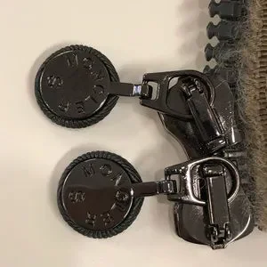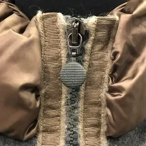 - Grosgrain Ribbon that is on both sides of the main, front zipper is a Carmel color and has a frayed texture which is part of the style and not because of wear and tear