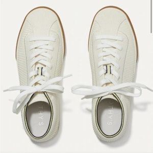 Rothy’s Lace Up Sneaker in Vanilla Cream Off White Neutral Knit Trainers Shoes
